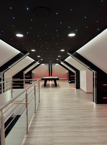 Innova Signature unveils here an exceptional achievement: the transformation of an attic space into a truly high-end billiard room. Designed as an immersive relaxation area, the layout is built on a perfect balance between contemporary design, intelligent lighting, and a fully personalized atmosphere.